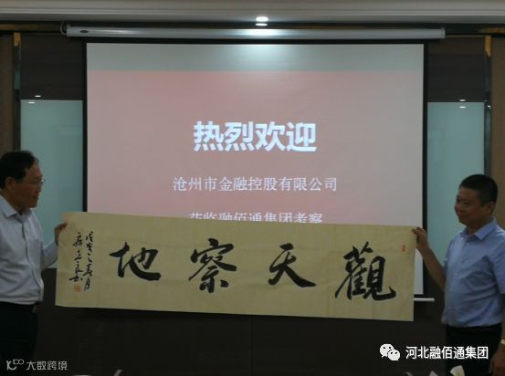 2018年5月9日上午10点,石家庄的天空阳光明媚,沧州市金融控股有限公司党委书记兼董事长韩中文一行6人莅临河北融佰通集团参观考察,集团公司董事长韩增杰携高层领导隆重接待。