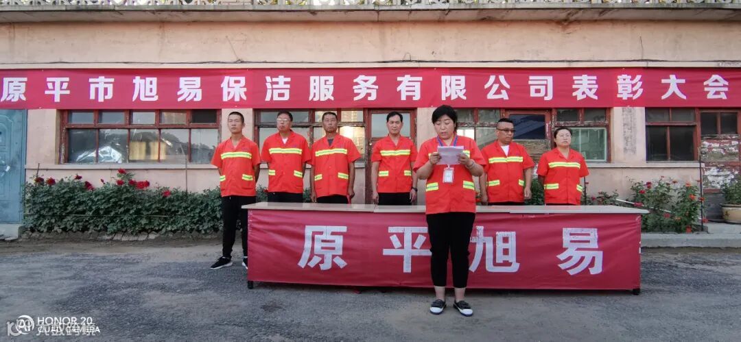 近日,原平旭易在公司环卫项目部召开了员工表彰大会。原平旭易项目总辛剑民、原平旭易项目副总兼行政部主任白晋、保洁部经理陈春青、人事部主管皇甫美丽、品质部主管赵常青、财务部主管王克青、设备部队长王青龙、以及中层管理人员30余人、保洁人员190余人出席本次表彰大会。