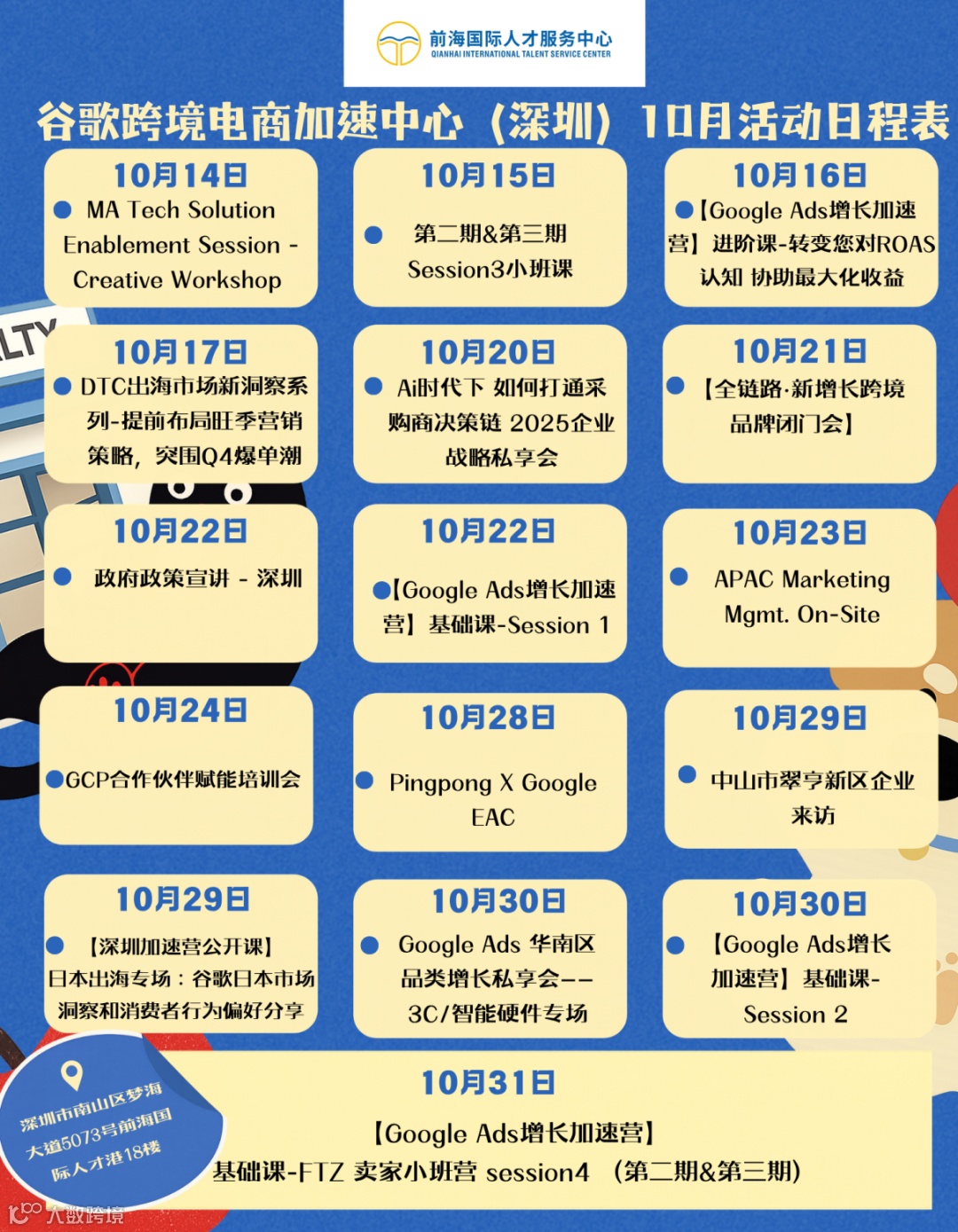 谷歌跨境电商加速中心(深圳)十月已举办活动一览如下。