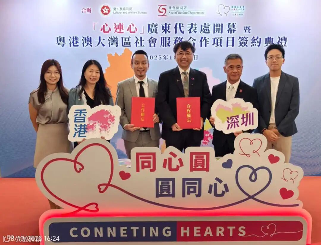 与会嘉宾共同见证“心连心”在深圳市前海国际交流合作平台、深圳市罗湖区妇女儿童活动中心及广州市海心沙志愿服务主题公园开设的三个服务点正式启用。随后,46间香港社福机构与83间来自广东及澳门的社会服务组织签署共102个合作项目,涵盖长者服务、青少年工作、残疾人士服务、儿童及家庭服务、精神健康服务、社工专业培训及戒毒康复等多个服务范畴。
