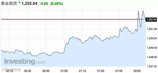 现货黄金短线上扬6.60美元至日高1255.39美元/盎司,使得日内涨幅扩大至大约0.4%。