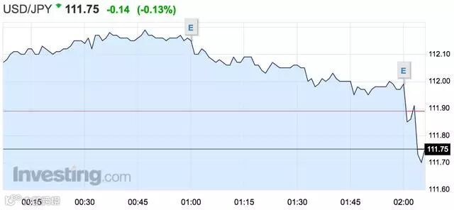 美元兑日元在美联储决议声明发布后下滑61点最低触及111.56,使得日内跌幅扩大并超过0.2%。