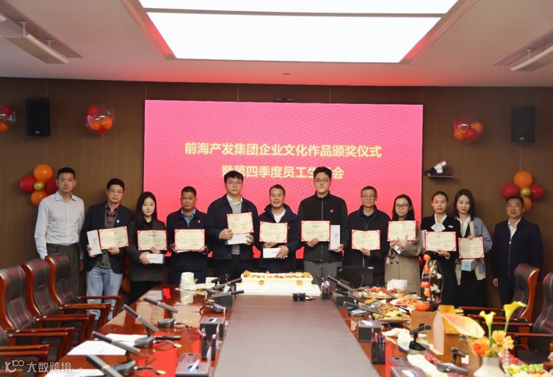 12月26日下午,前海产发集团 “新前海・向未来” 企业文化作品颁奖仪式暨第四季度员工生日会在前海大厦T1九楼一号会议室圆满落幕。集团领导班子、第四季度生日员工及摄影与征文比赛获奖员工齐聚一堂,共赴文化之约,共享生日温情,为集团年度企业文化建设画上圆满句号。