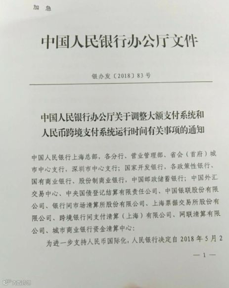 (一)中国票据交易系统和电子商业汇票系统的上述运行时间调整自2018年5月1日起生效。