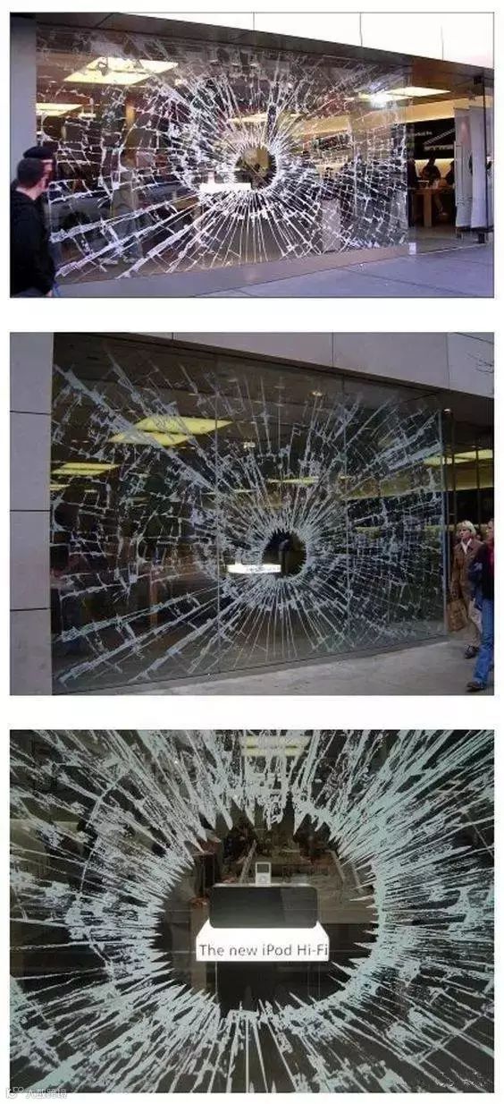 ▲这家店铺橱窗玻璃怎么碎成这样了?走进去看看,原来是他家的商品砸的呀?