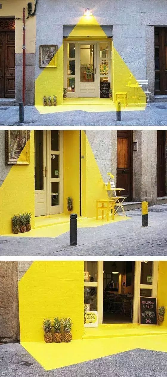 除了简单的创意,你还可以在你家店铺门头来场破坏。