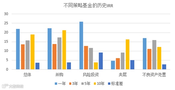 根据专业机构统计,在一年、三年、五年、十年的投资周期内,全球不良资产基金的内部收益率在各类策略基金中最为稳定,年化收益在11%-16%之间波动,标准差仅为2.8%,是所有类型基金中最低的。