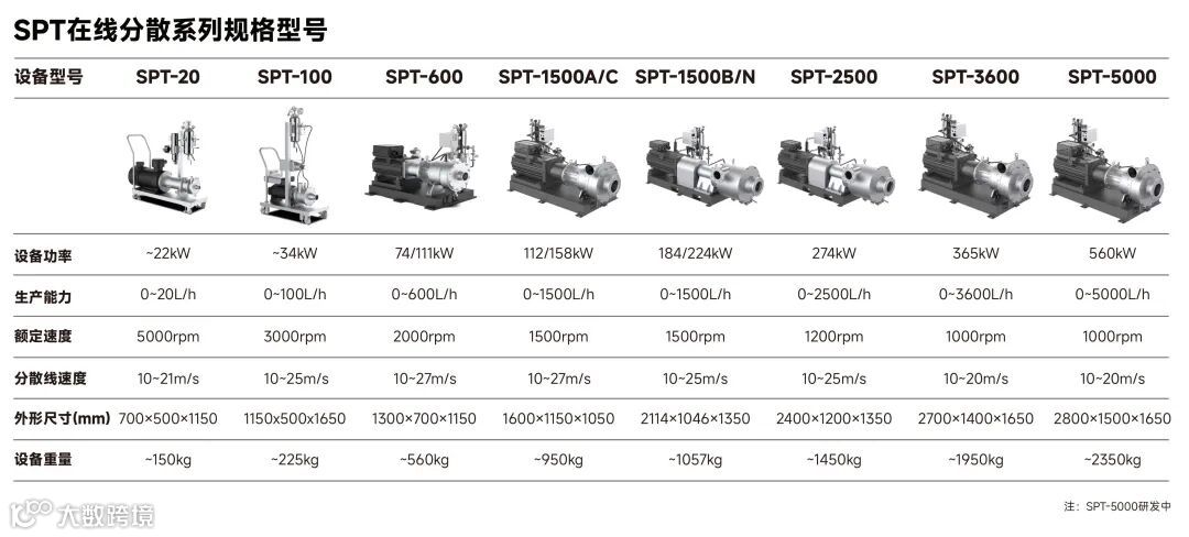 现在,我们的在线分散机具备从SPT-20到SPT-5000等八款不同规格的设备型号,覆盖多种产能需求。