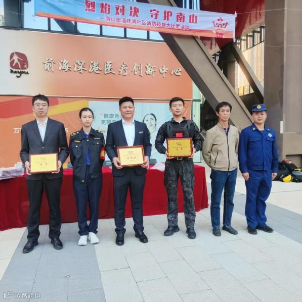 经过激烈角逐,前海深港青年梦工场北区项目荣获团体第一名。社区领导为获奖单位颁发了荣誉证书。他表示,此次消防大比武不仅是对片区各单位消防安全工作的一次全面检验,更是一次集中的技能培训和实战演练。通过以赛促练的方式,有效激发了各单位参与消防安全工作的积极性,进一步提升了从业人员的应急处置能力,为保障桂湾片区人民群众生命财产安全和辖区安全稳定奠定了坚实基础。