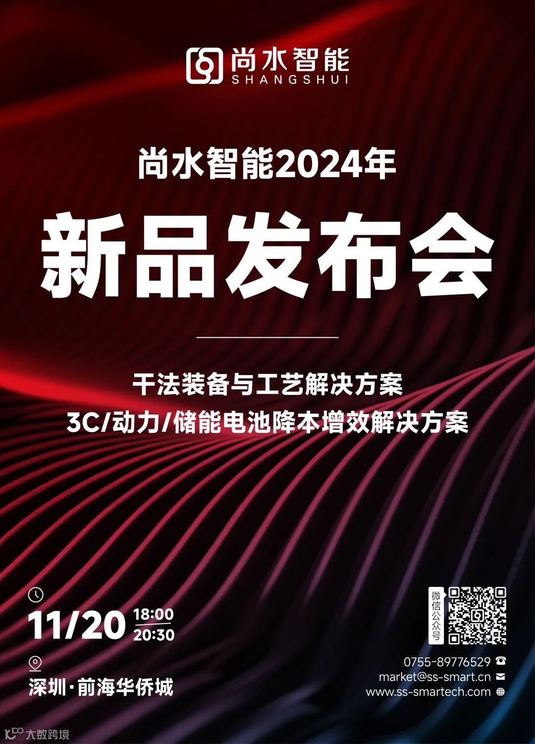 演讲最后,王杨总监透露到,尚水智能正在研制下一代干法技术,并预计于今年11月20日在深圳·前海华侨城举行尚水智能2024年新品发布会。届时,尚水智能将发布干法装备与工艺解决方案、3C/动力/储能电池降本增效解决方案等新品。