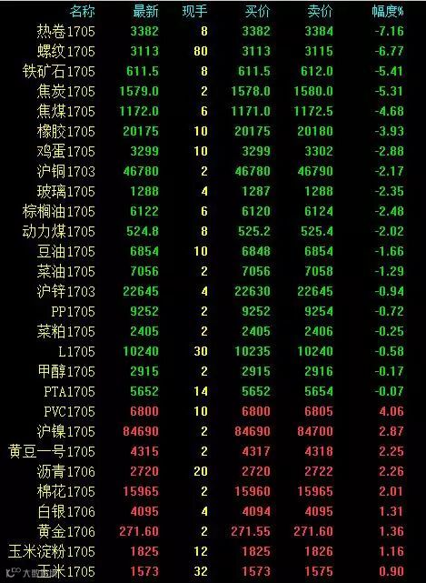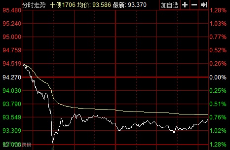 而在债券市场,国债期货高开低走全线大幅收跌,10年期国债期货主力合约T1706跌0.82%,盘中最大跌幅1.39%;5年期国债期货主力合约TF1706跌0.40%,盘中最大跌幅0.72%。