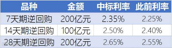 14天期逆回购操作中标利率2.5%,此前为2.4%;