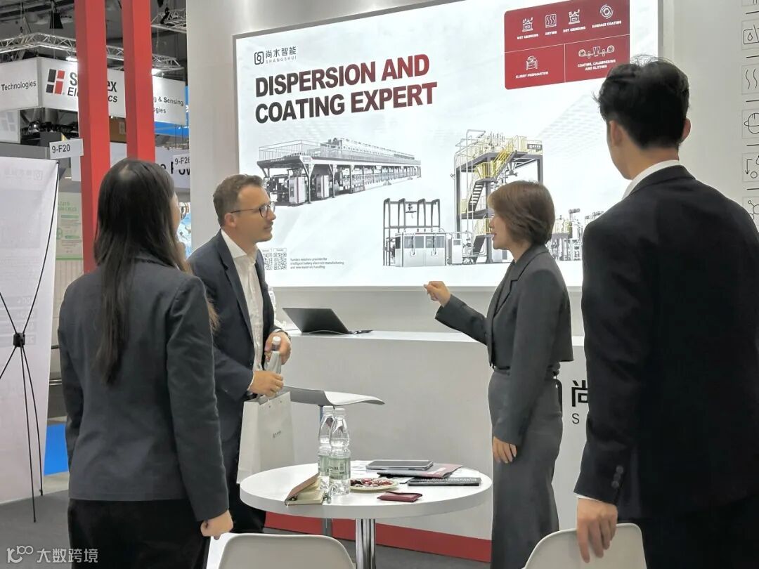 展会现场,尚水智能展出的干法电极制造工艺收获世界各地专业人士的高度关注与广泛认可。尚水智能已成功开发粉料混合包覆、纤维化、辊压成膜覆膜等适配不同主材的工艺设备。
