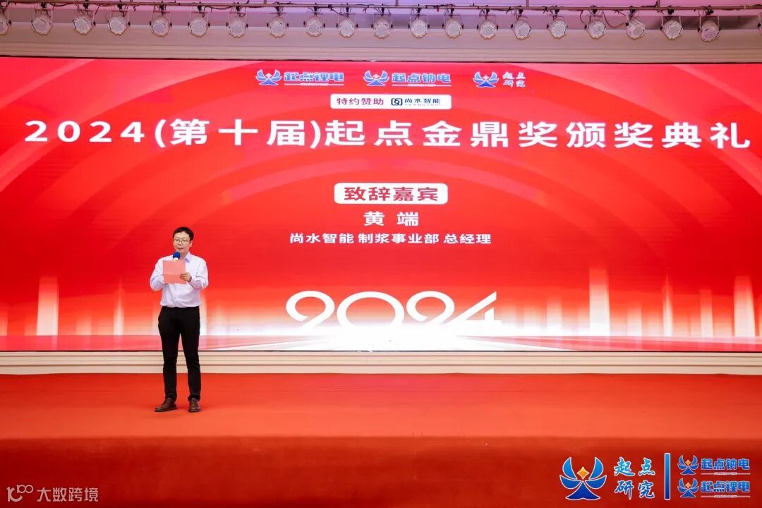 7日晚,尚水智能制浆事业部总经理黄端受邀为第十届起点金鼎奖颁奖并致辞。黄端总经理向各位获奖企业表示祝贺并指出,在全球能源结构转型的大背景下,持续推动技术创新并具备敏锐的市场洞察力,是新能源企业深入了解市场、穿越行业周期、实现共同发展的关键。
