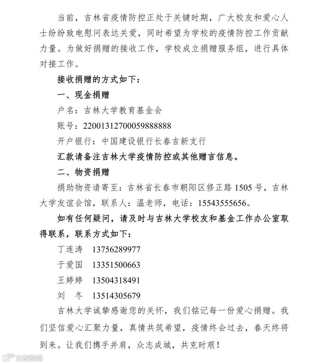 冬将尽,春可期。愿山河无恙,吉大皆安。待到春风十里时,愿有子兰漫盛世。吉林必胜!吉大加油!