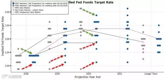 在点阵图方面,美联储预期: