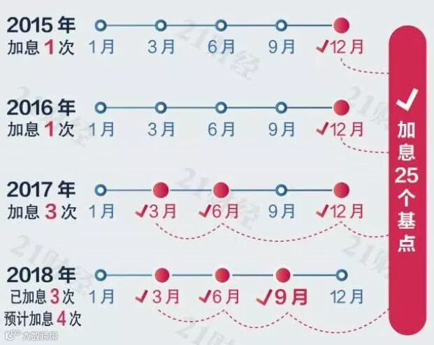 2018年加息4次;