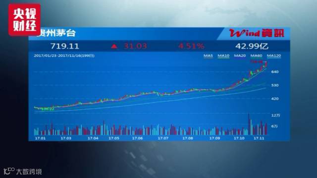 其中,11月16日贵州茅台再度涨势如虹,开盘不久,便迅速冲破700元,而且全天维持强势,最高涨至719.96元,最终以719.11元报收,涨幅达4.51%,再度刷新历史新高,茅台总市值也一举突破9000亿大关,达到9033亿,今年以来,茅台的涨幅已接近120%。