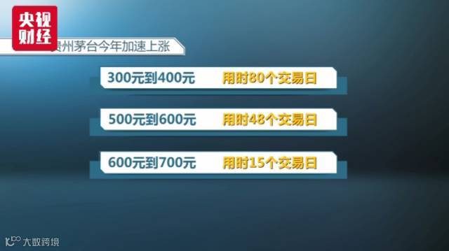 今年以来,贵州茅台从年初的327.49元开盘,连续突破四个百元整数关口,站上700元高位,整体涨幅超118%。在此期间,茅台涨势不断加速:从4月19日盘中突破400元高位,到8月14日突破500元,用时80个交易日;从500元到10月26日突破600元,用时缩短至48个交易日;而从600元到11月16日突破700元高位,仅用了15个交易日。