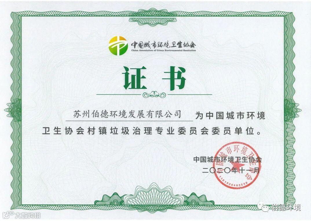 苏州伯德环境发展有限公司作为专委会发起单位之一出席了本次成立大会,并被授予中国城市环境卫生协会村镇垃圾治理专业委员单位。