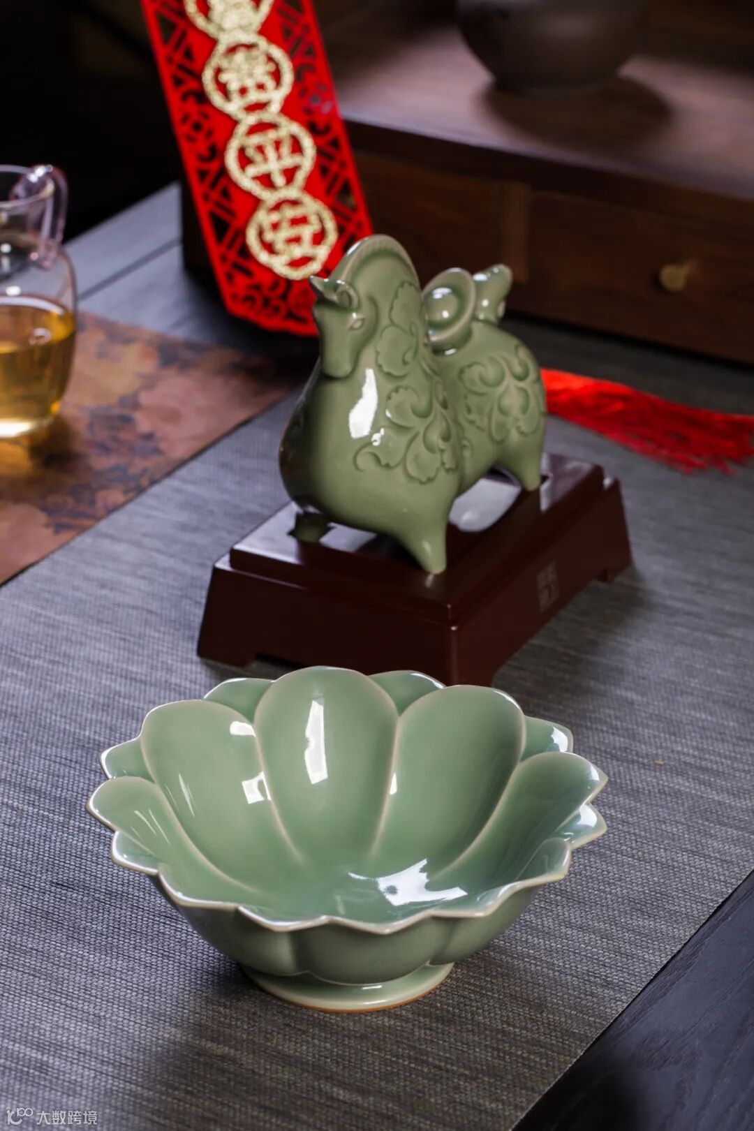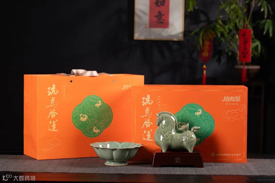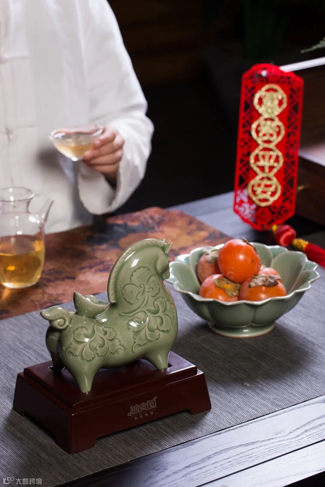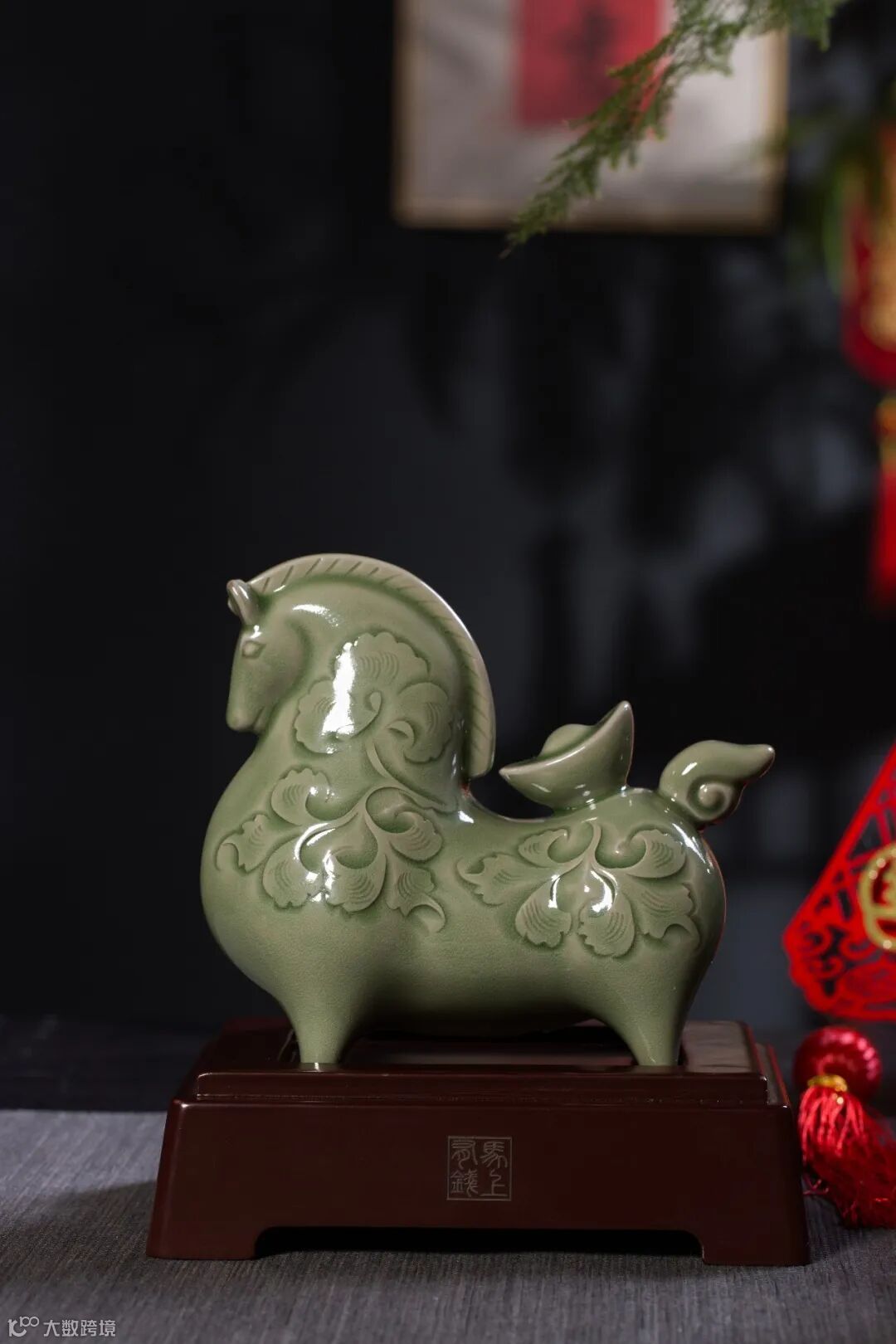 越窑非遗传承人周统鉴大师以越窑青瓷为载体,秉承溯源、传承、创新的理念,以梦为马,以莲作花,组合创作《瑞马启运》2026专属年礼,表达了“花开富贵、马上有钱”的新年祝福。骏马壮硕,蓄势待发,背驮元宝,富贵可望;莲荷成型,重瓣相衬,繁花似锦,聚财纳福。本套年礼既体现了马年的良好寓意,也以青瓷这个五行俱全之器,传递美美与共的精神共鸣。