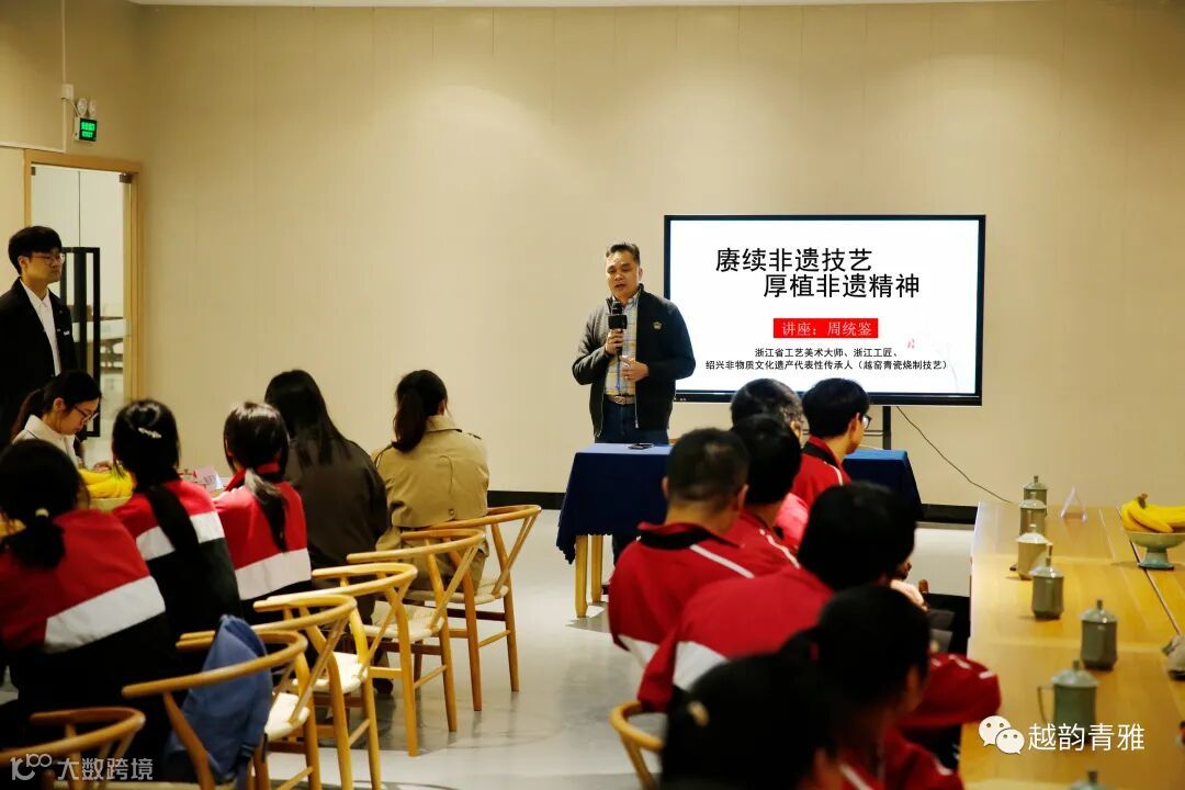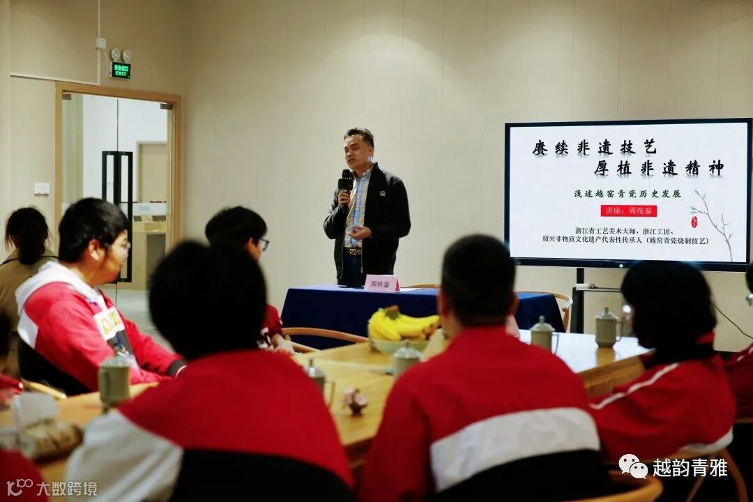 当天,周统鉴大师为来访的师生做了 “越窑青瓷的历史渊源” 讲座,以图片、文字、实物的形式,讲述了越窑青瓷的前世今生和艺术特点。