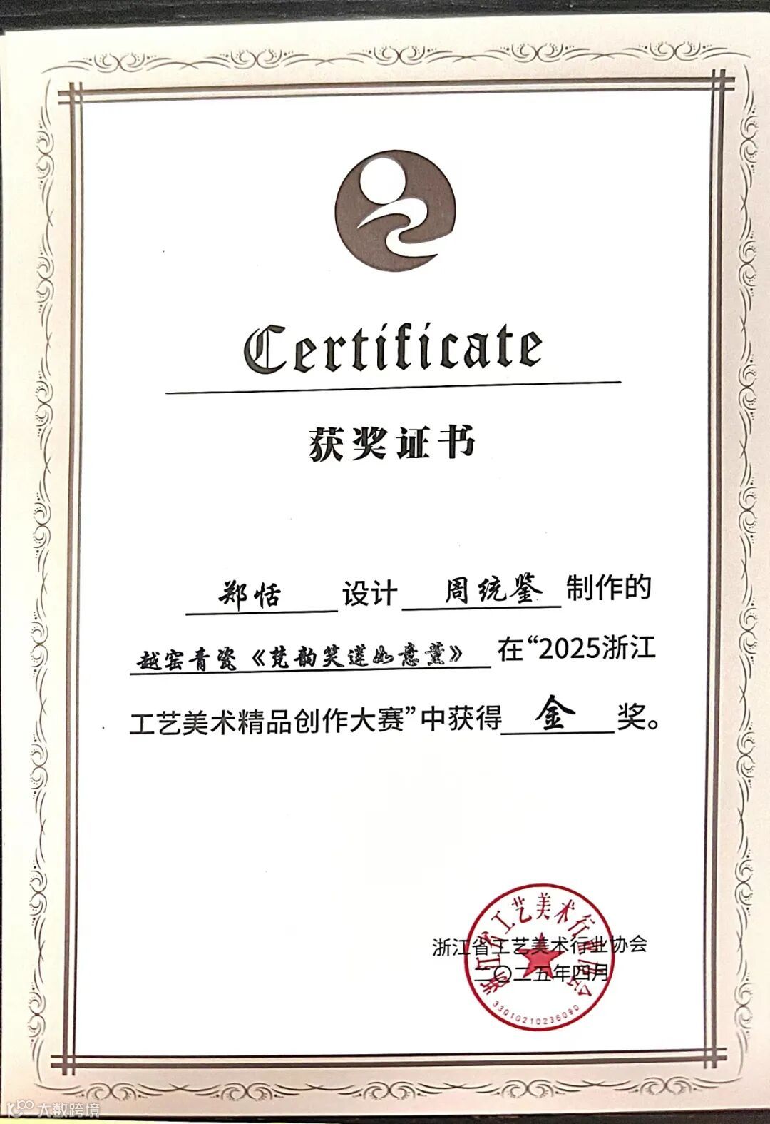 日前,越青堂四喜盈门。我们把这些喜讯与所有关心越青堂、越窑青瓷的朋友们分享: