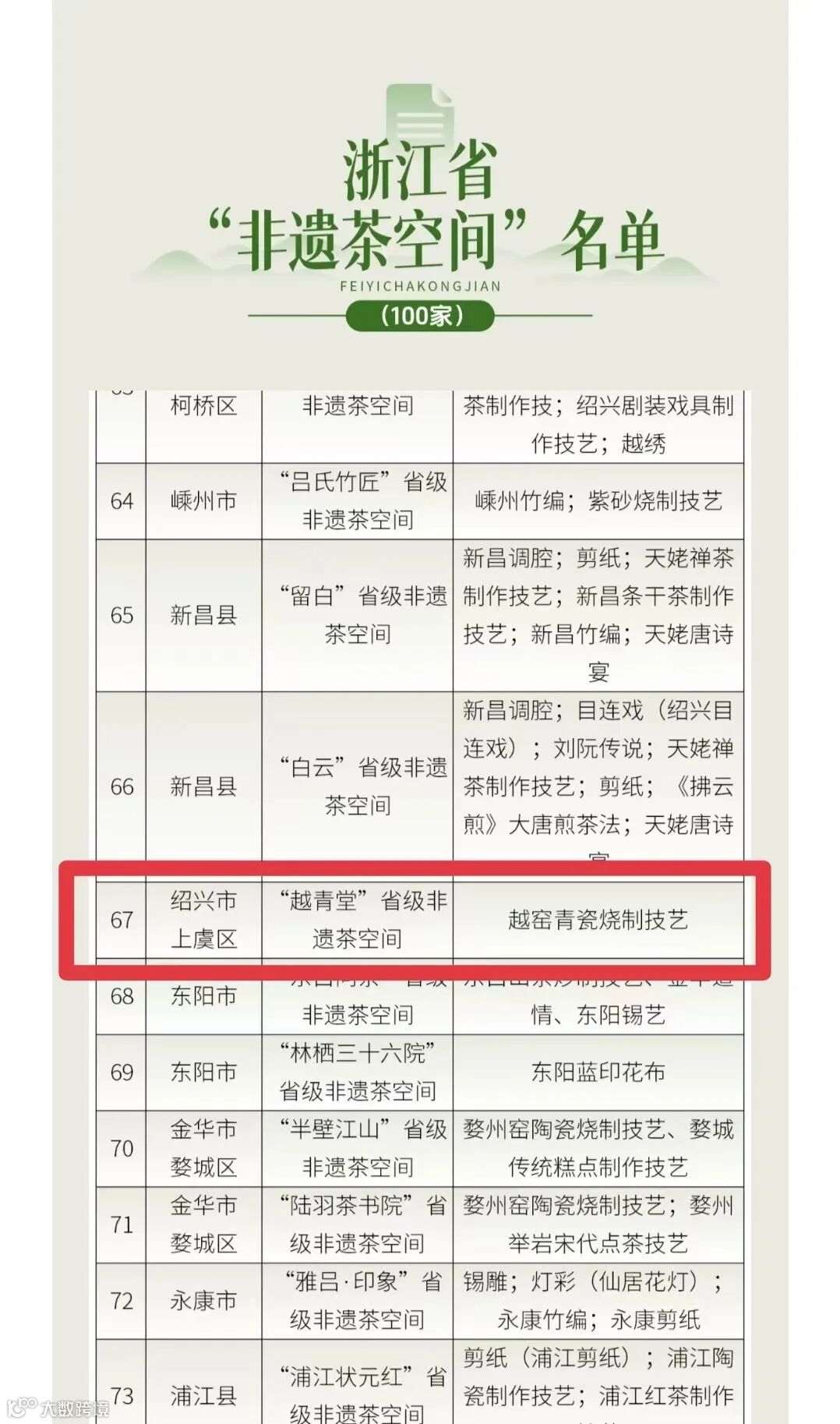 日前,浙江省文旅厅发布公告,公布了全省100家省级“非遗茶空间”,“越青堂”省级非遗茶空间赫然在列,是全市共10家、上虞区唯一的一家入选企业。越青堂以“非遗+商业综合体”的非遗融合新业态入选,打造“非遗+茶文化”、“非遗+体验经济”、“非遗+文创开发”,以新品类、新美学、新场景,提升文旅产品供给能力,满足人民群众对美好生活的向往,并成为优秀传统文化“两创”成果新标杆,为非遗系统性保护与文旅深度融合注入新动能!