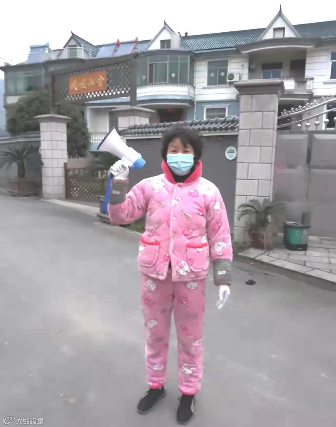 越青堂员工钱云珍寒风中义务宣传抗疫