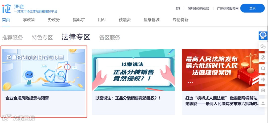 企业合规风险提示与预警服务是深圳市司法局落实中央支持深圳打造企业合规示范区有关部署、整合实务专家和专业资源推出的一项面向企业的公共法律服务,旨在为企业提供国内外各行业领域及时准确的合规资讯,帮助企业了解合规义务和潜在法律风险,以更好适应市场监管政策变化,助力企业稳健发展。