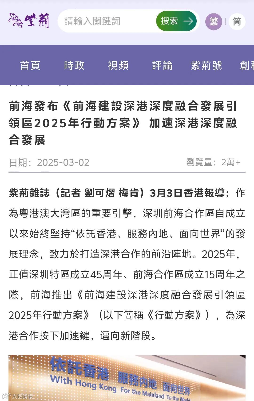 《前海深港深度融合发展引领区公布2025年行动方案 便利港人生活就业 推进民生领域融通》