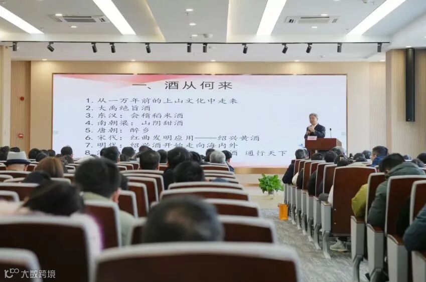 白居易没有想到,1180年后,也是在这样一个寒冷的冬日,一堂别开生面的关于黄酒的文化课,在绍兴市上虞区瓷源文化小镇报告厅开讲了!上虞区政界、文化界、艺术界、企业界共近百人聆听了这场陶醉而微醺的文化课。