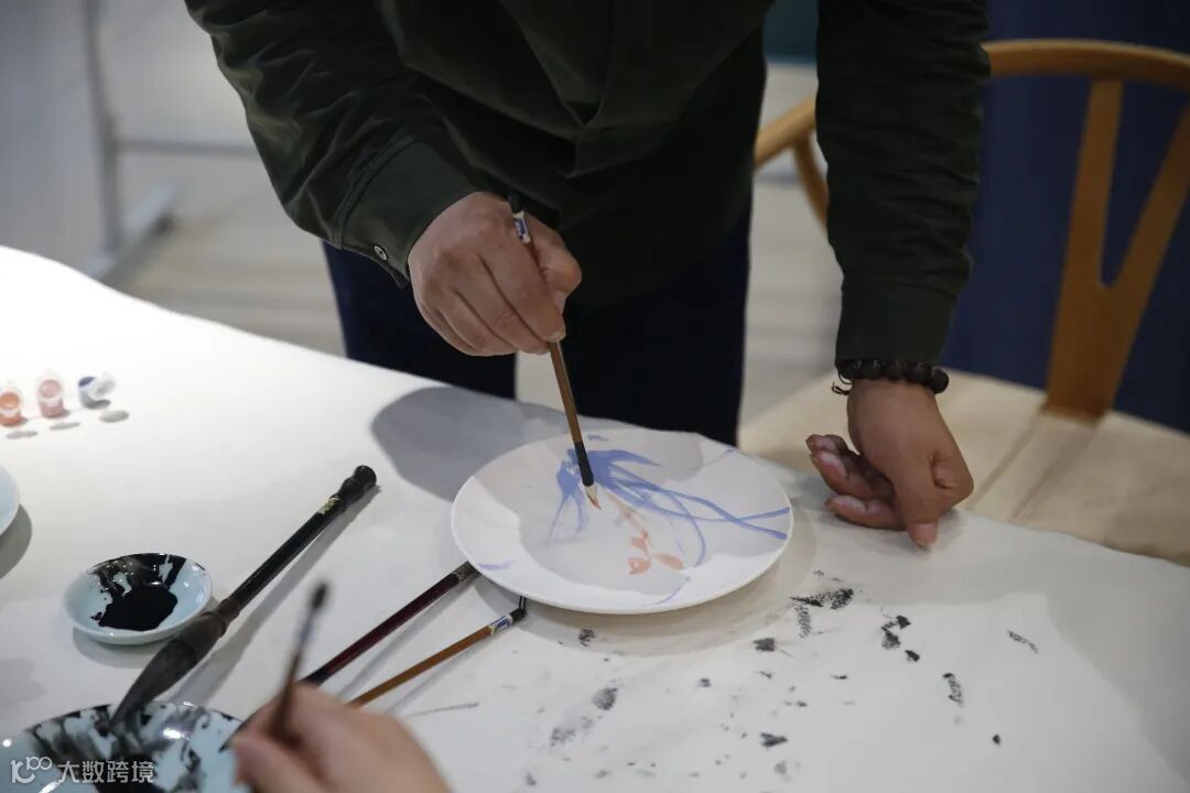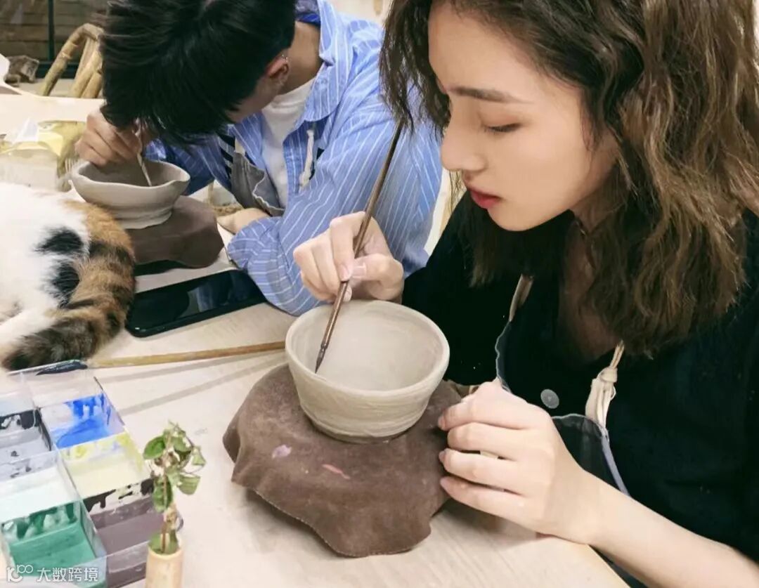 参加情侣双人画瓷活动