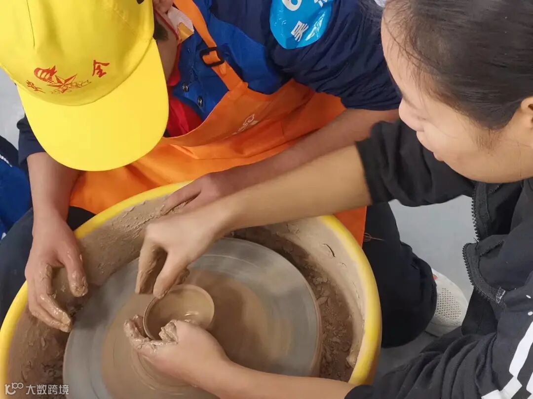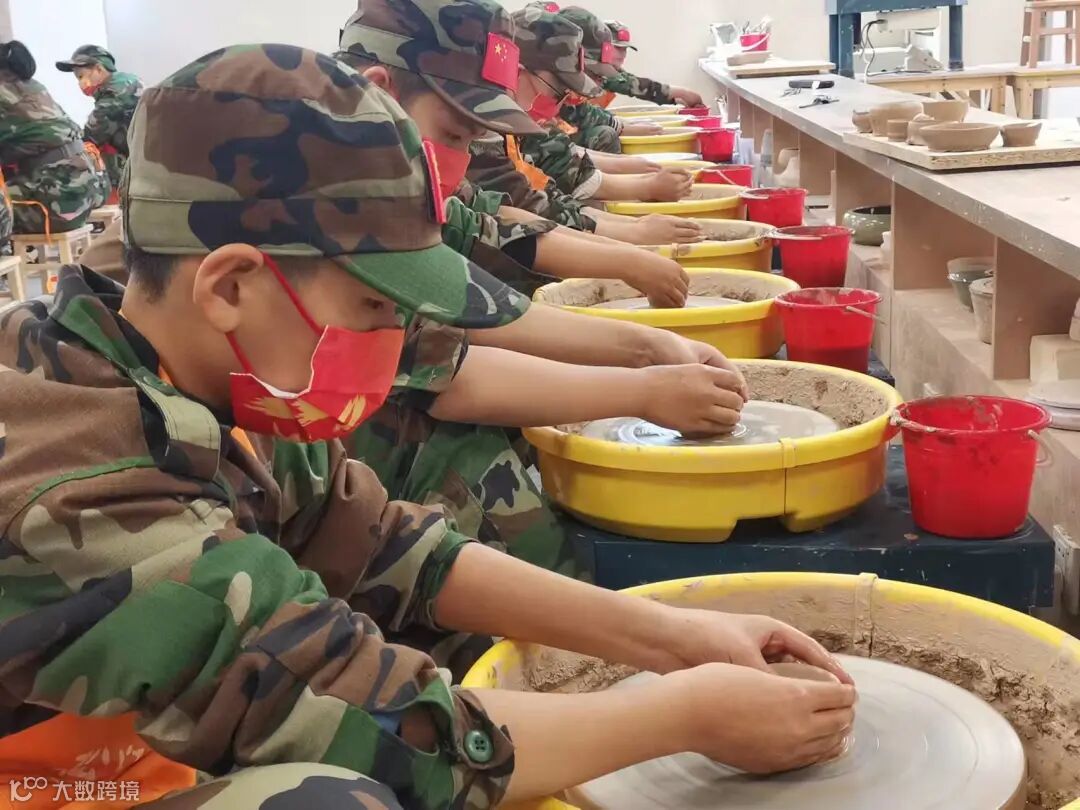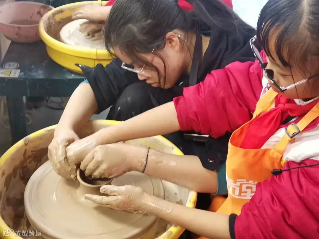 在研学导师的讲授下,结合大屏幕,让孩子们了解瓷土的性质与拉坯的原理、瓷团重心的掌握,随后付之以实际创作。孩子们根据脑海中的器型即兴创作,领略指尖跳动的技艺!以这种方式致敬越窑!致敬手工艺人!