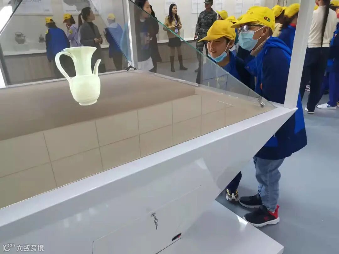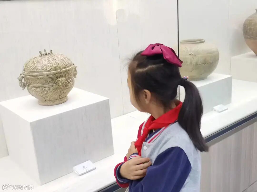 在越青堂的非遗厅内,解说员带着孩子们追寻青瓷文化的历史长河,通过对图片、文字、实物的讲解,从一片碎瓷、一个器物、一帧画面,导出越窑青瓷的发展脉络与艺术价值,使孩子们对传统文化有所感悟。