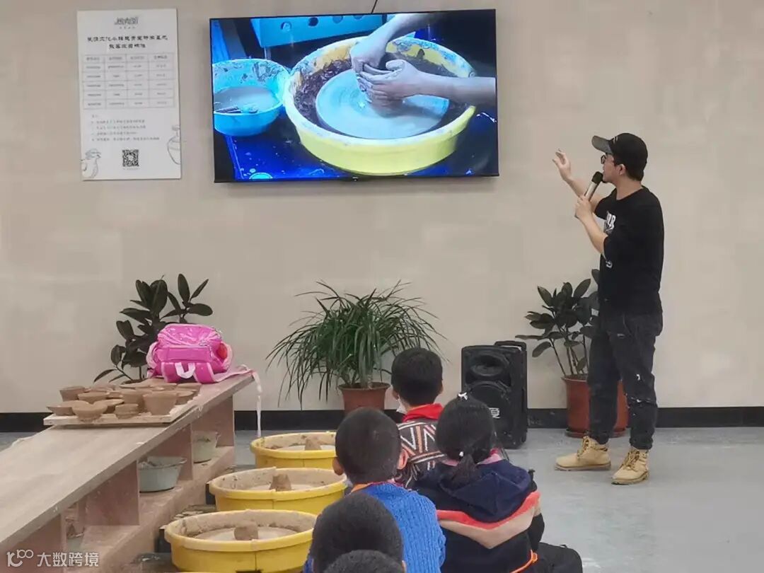 研学导师王伟男结合视频传授制瓷要领。