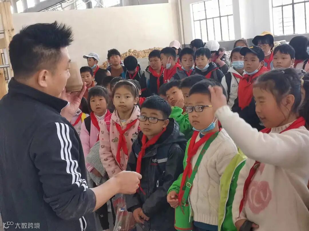 生产厂长屠宗毅给孩子们讲解灌浆技术。
