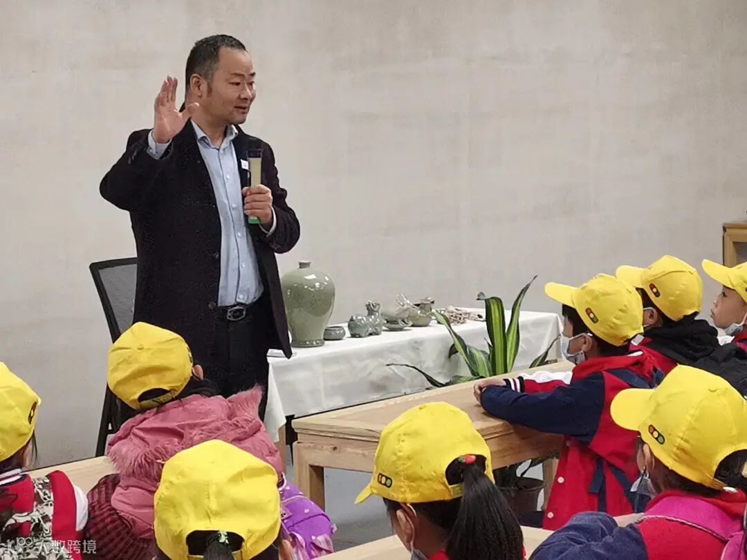 在研学厅,这堂趣味与知识并重的课别开生面,给了孩子们很多启迪。研学教师娓娓道来,中间辅以互动方式。陶与瓷的区别。陶瓷的制作流程。器型包含的生动涵义。尤其讲到瓷器在生活中的应用,踊跃发言者众,孩子们的兴趣被充分调动起来,另外,被调动的还有对越窑青瓷的热爱,以及越瓷复兴之梦。