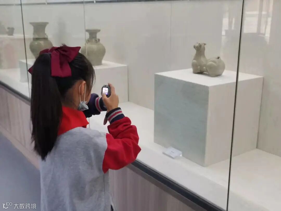 孩子用拍摄的方式留存心中越瓷的倩影。