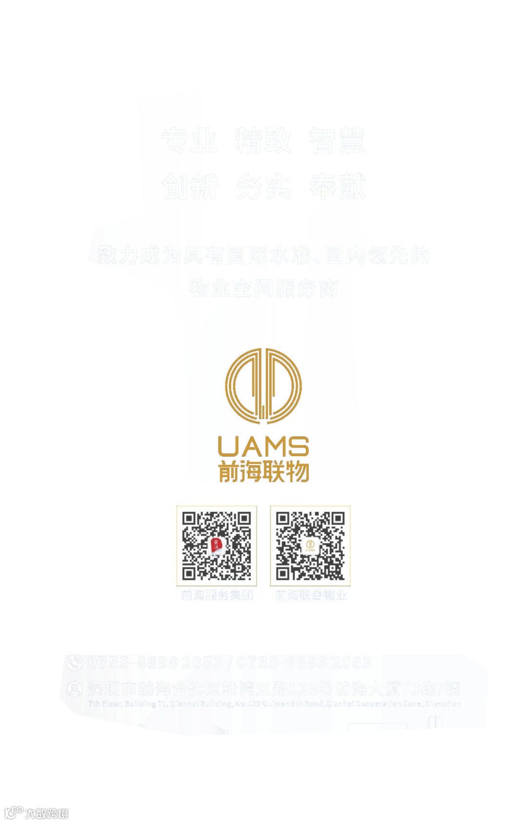 经过8年的砥砺前行,在商写、产业园、资产运营、空间服务、综合保障等领域积累丰富的服务经验,未来前海联合物业将继续秉持“匠心”精神,不忘初心,持续提升服务品质,为客户提供有温度的空间服务。