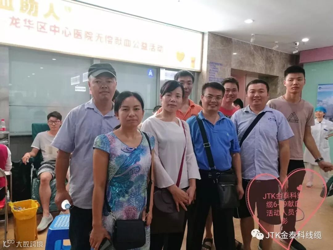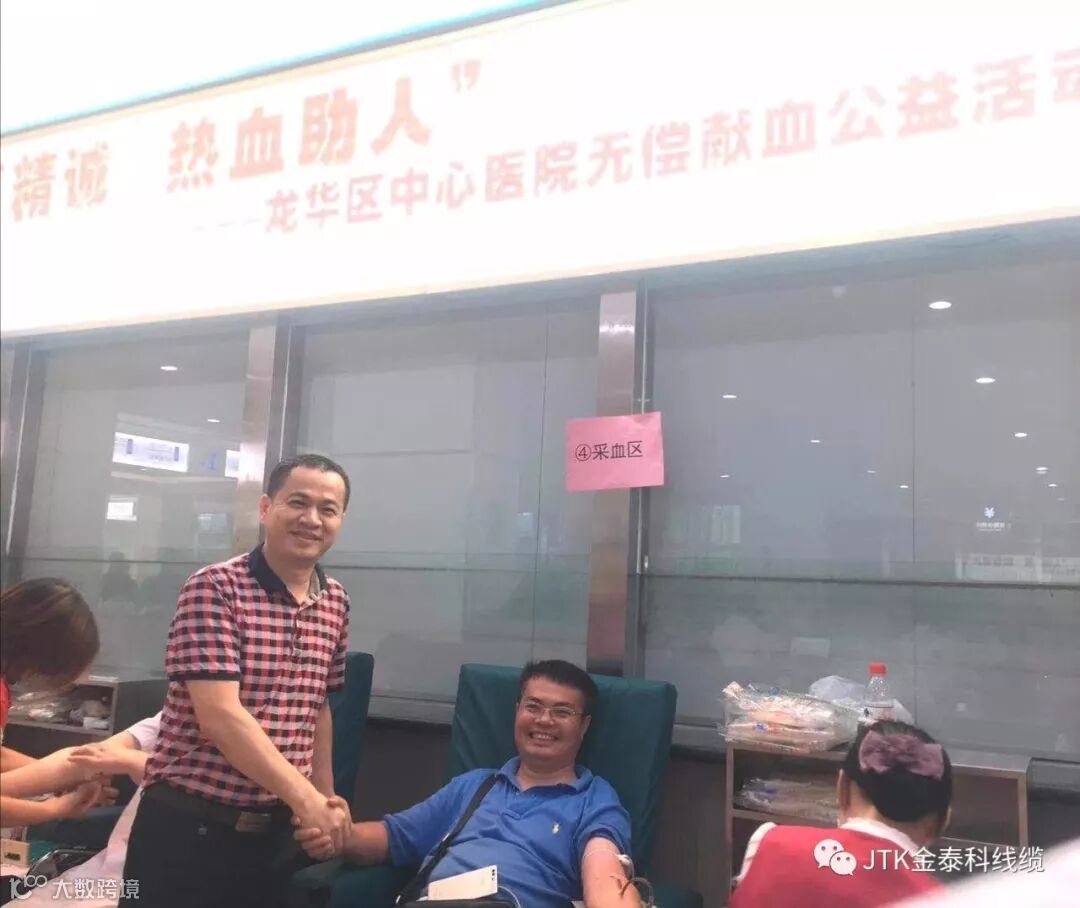 大爱至诚,热血助人!在民盟龙华二支部的号召下,JTK金泰科线缆共十余人参加了昨天在龙华中心医院举行的献血活动!捐血救人,为社会献爱心,我们永远在路上!