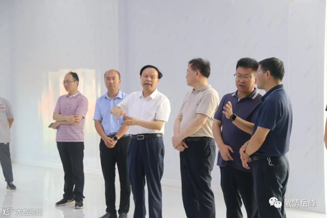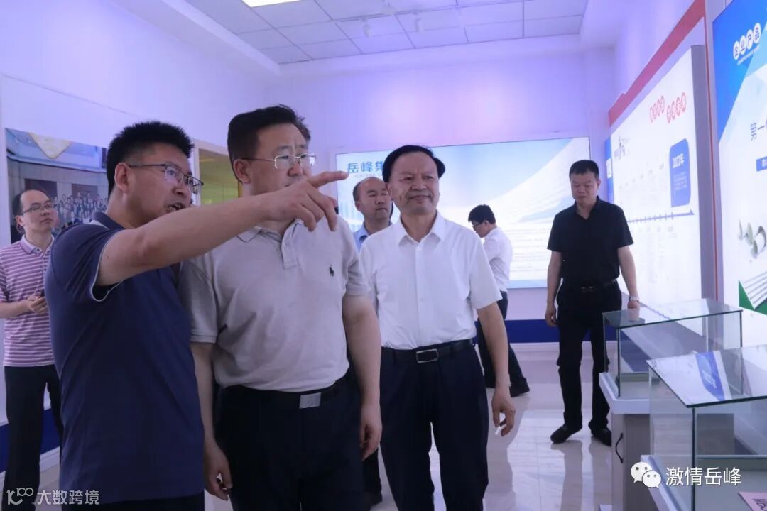 与岳峰董事长田岳南(右)等一起观摩岳峰展厅