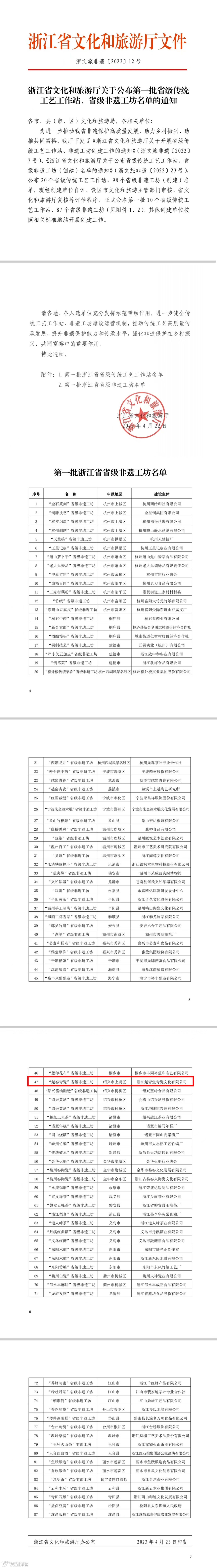 今日,浙江越青堂接获浙江省文化和旅游厅非遗〔2023〕12号文件,正式命名我公司为浙江省第一批“省级非遗工坊” 。这是此次省文旅厅公布的上虞区唯一的一个省级非遗工坊,也是越青堂入驻上虞瓷源文化小镇后,取得的又一个亮眼的成绩。