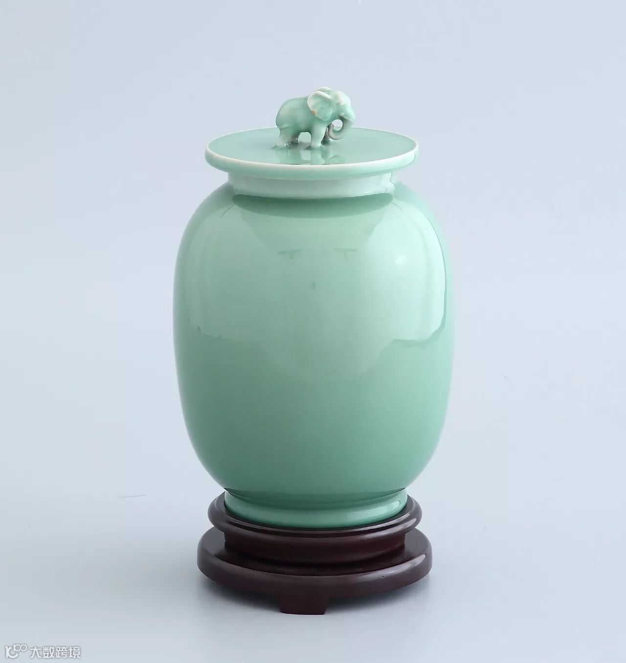 《太平有象》是龙泉青瓷弟窑,纯手工制作。朱砂胎,厚施梅子青釉,罐身不作任何纹饰。盖平釉厚,以象为纽,寓“太平有象”之意。整体造型简约大方,质朴典雅,稳重得体。小象妙趣横生,憨态可掬,让人浮想联翩。