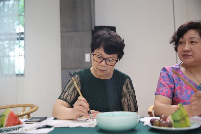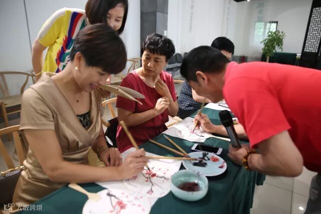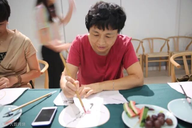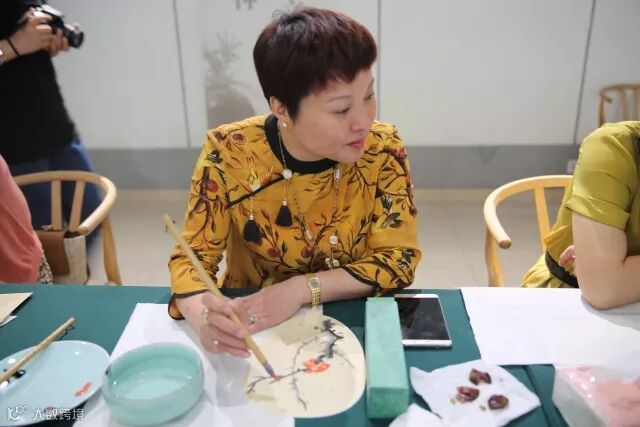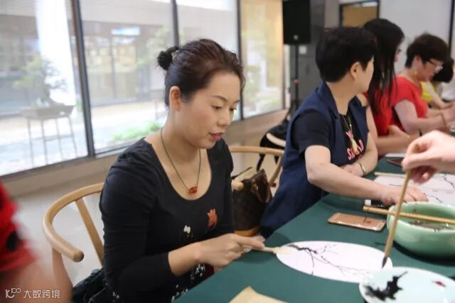 女企业家们认真专注,许多人是第一次进行国画创作,新奇之心溢于言表