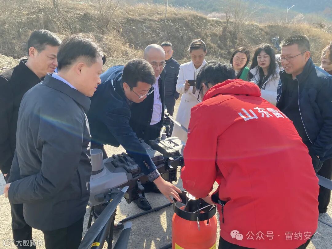 为了考察低空经济发展前景与技术成果, 2025年3月17日,重庆市南川区领导莅临山东雷纳安全科技有限公司,并进行了参观、交流。董事长兼总经理张瑞昌、副总经理张笛、运营总监徐爽、销售总监王伟热情接待了参观成员一行。