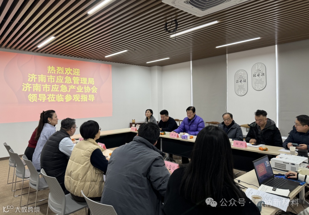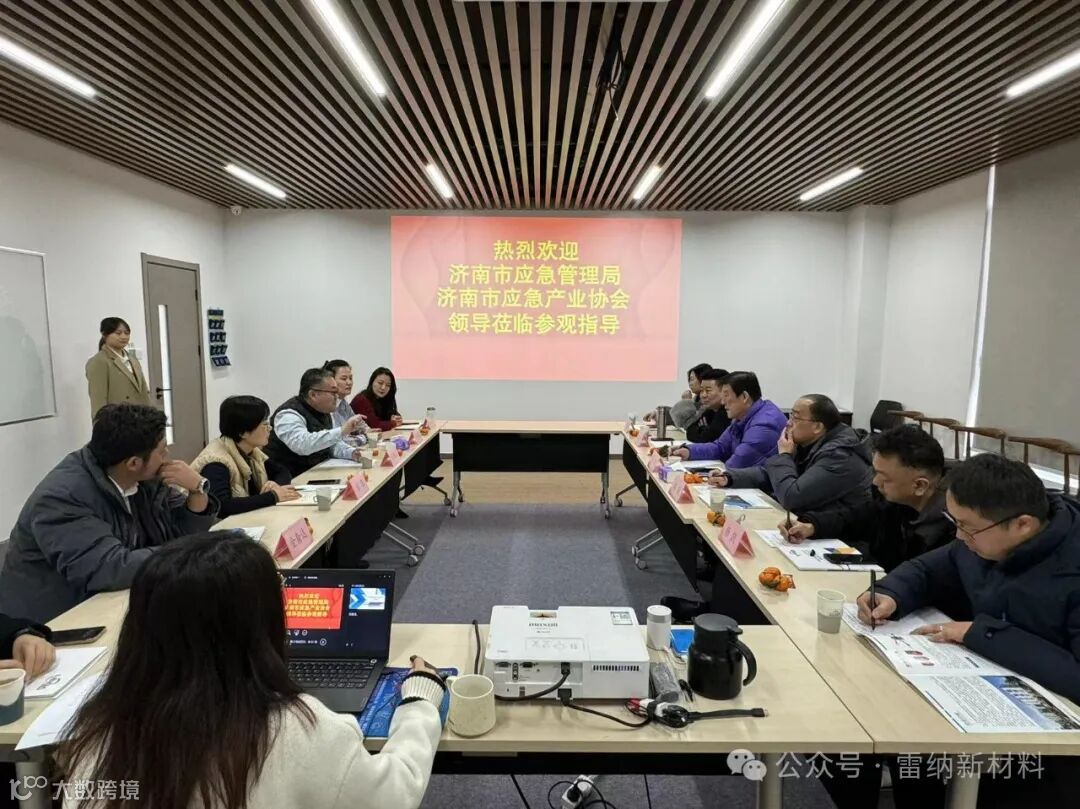 2024年2月6日下午,济南市应急管理局、济南市应急产业协会领导、专家及企业家成员莅临山东雷纳新材料科技有限公司,并进行了参观、交流。董事长兼总经理张瑞昌、副总经理张笛、运营总监徐爽、销售总监孙伟伟、市场部经理樊琪热情接待了参观成员一行。