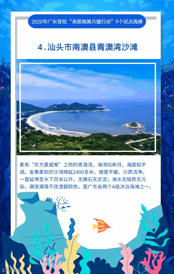 美丽海滩,人人参与。为推动海洋生态环境保护,广东省生态环境厅近日下发通知,决定开展2020年美丽海滩共建行动。广东首批“美丽海滩共建行动”9个试点海滩,你去过哪个?一起来看看!