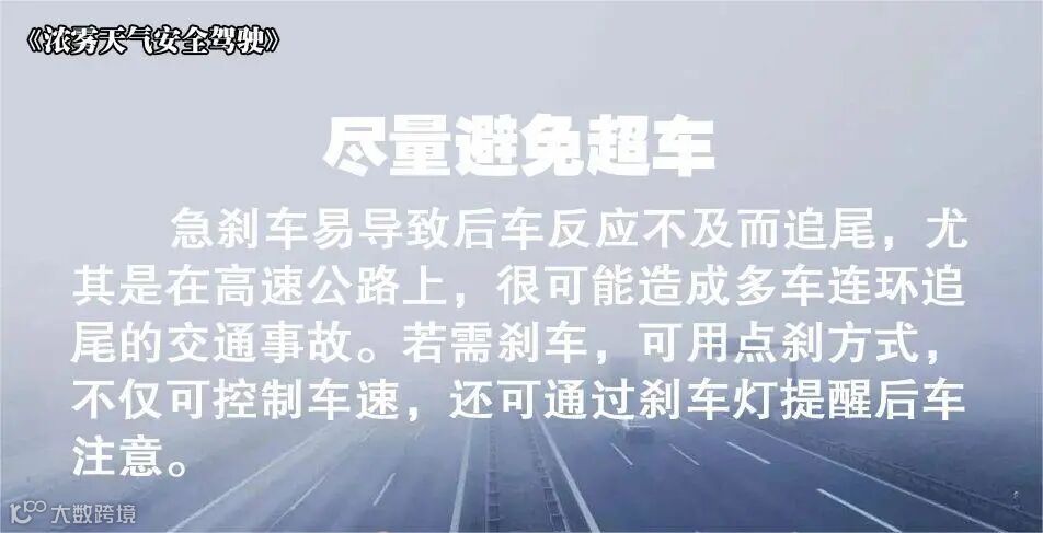 入冬多雾,夜间和清晨更易多发浓雾天气。在高速公路上、山区路段、临近大面积水域的路段还会经常出现团雾现象,对安全行车影响极大,所以,雾霾天的安全驾驶常识,所有驾驶人一定要提前了解、牢记在心!