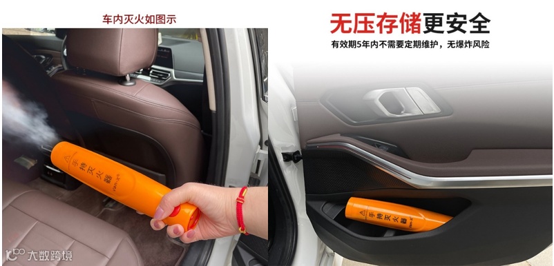 车辆车舱起火、轮胎起火,用手持灭火器也能迅速扑灭。传统灭火器尺寸受限,只能放于后备箱,而它瓶身小巧,车内触手可达。